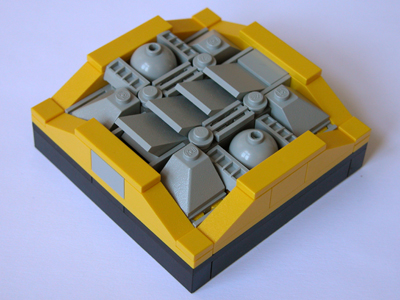 So this is the one I did - I'd wanted to make a kind of intakes using slopes for a while and got the chance here. The yellow rim is just something to emulate surrounding spacecraft hull.