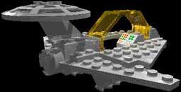Landing gear: As landinggear I chose to use tailfins, giving the appearance of being little feet. Their forwardstreaching direction and the general lightness of the plane meant that the gear could be fixed relatively far back (the tips actually just reach to the center of the plane).