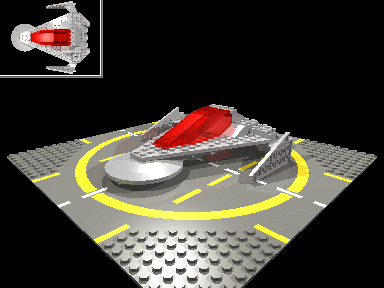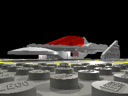 Gear: When I added vertical wings to the tails for rudder (like in 2nd world war bombers), I suddenly found out that the plane could actually stand on them, so no other gear were needed. The rest of the plane was more or less standard Classic Space construction. |