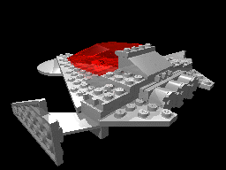 Inspiration: In this model I returned to slotting brackets and engines in between the wings like in the 11 Surfaceskimmer and 15 Dropnose. While in the Surfaceskimmer the brackets and engines had been nearly centered at the edge of the wing, the bracket of the Dropnose were one plate lower, and fiddling with this model and the types of tails used for gear, I found out that at that heigth, the tails could just slid under the wings leaving no gap. |