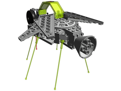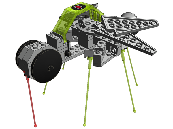 This model basically grew out of my fascination with those long thin transparent antenna-whips - using them as legs on a mosquito-ish model inspired by my earlier two "Myg" fighters (small crafts designed to live off the fuel of bigger crafts).