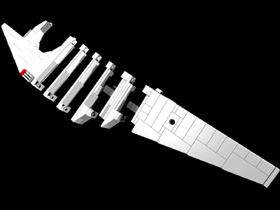 Nah, not really Although the Stardestroyer idea furthermore inspired me to include three balls to work as reactors/fueltanks for the engines and break up the arrow shape (like an Interdictor class Stardestroyer), I was hesitant to start on the craft: Although I knew it would be adequately challenging technically, it just felt really boring to copy a design that had been done a hundred times before. Scribbling a bit: When 1½ months had passed since I made the