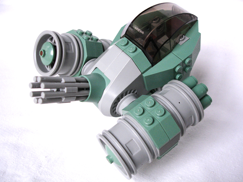 This in turn made the upper engines in the original SLAM-design unnessecary, and I decided to leave these out and go for a more cute podracer-ish design (which is why I've designated the craft SLAM-derivate instead of just SLAM). |