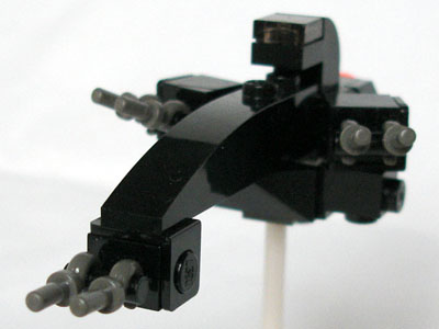 Obviously very much inspired by one of the cool capital ships from the Star Wars Flight Simulators (from TIE-fighter onwards), the Strike Cruiser. The core is made with the bracket-box-technique as explained by... in this thread. |