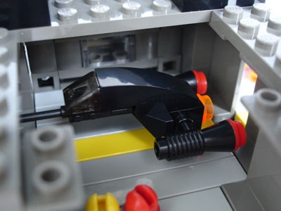 In the image on the right you can see the Railgun Corvette together with a 3pM-sized version of the crew-compartment behind the bridge. In the pictures below you can see these two versions together with a 16x minifig-sized version of the crew-compartment. |