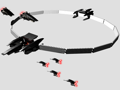 An old wish of mine is to create a nice spacy background for all my models, but lacking time and proper capital ships for backdrop, this has never really been possible. With the BSF, however, I suddenly found myself in posession of decent capital ships, and during the summer holiday of 2007 I set up a little scene with MLCad and POV-Ray. In order to increase interest photoshopping space-scenes among lego space designers (and get some inspiration myself), I decided to share the basic picture so that anyone could have a try. With 12 different versions from 10 different people, this challenge was a raving succes: You can read more and see all the cool images here. - The fleet was temporarily announced in this thread on CSF and with a limited number of pictures on Flickr. |